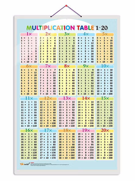 1-20 Multiplication Table Educational chart with Big font and Dust resistant Lamination | 300 GSM Recyclable Chart