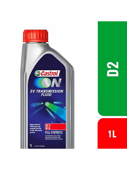 Castrol ON EV Transmission Fluid D2 is a fully synthetic advanced EV transmission fluid which helps improve efficiency and extends the life of the drivetrain system. It's meant for full battery, fuel cell, and hybrid electric vehicles with indirectly cooled electric motors