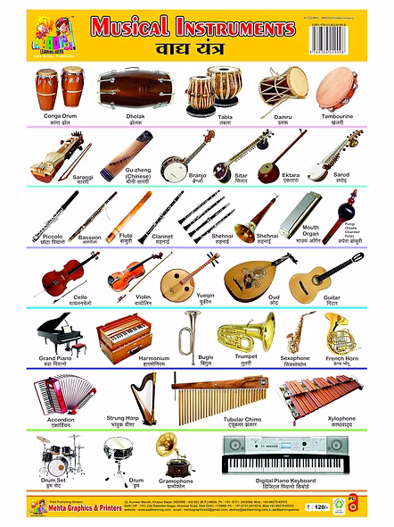 Combo of 5 Learning Charts Alphabet | Good Habits | Hindi Varnmala | Insects | Musical Instruments- Size: (70 CM x 47 CM X 1 CM) Each Chart [Wall Chart]