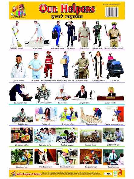 Set of non tearable wall charts for early learning including Alphabet | Birds | Colors & Shapes | Flowers | Food & Beverages | Fruits | Good Habits | Hindi Varnmala | Insects | Musical Instruments | Numbers | Opposits | Our Helpers | Parts of Body | Pet Animals & Birds | Tables | Vegetabels | Vehicles | Wild Animals. Each image contains respective names in bold letters for clear readability.