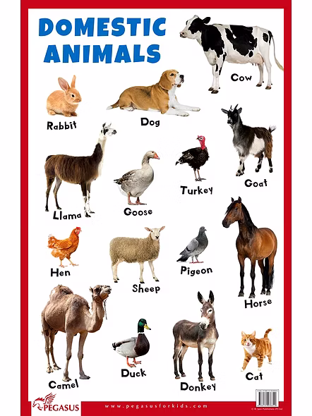 Domestic Animals - Thick Laminated Primary Chart Poster