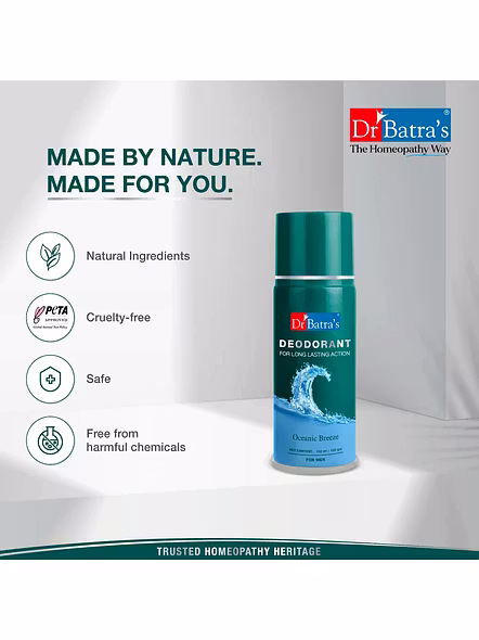 Feel reinvigorated with Dr Batra’s Deodrant for Men- Oceanic Breeze, its fresh aromatic musky fragrance has an uplifting and sensuous aroma and provides a long-lasting action against odour. Free from harsh chemicals, this deo for men is gentle on the skin and tough on odour.
