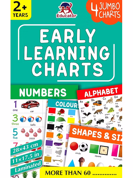 Early Learning Charts - 4 Jumbo Charts for Kids Wall Chart – Poster Calendar