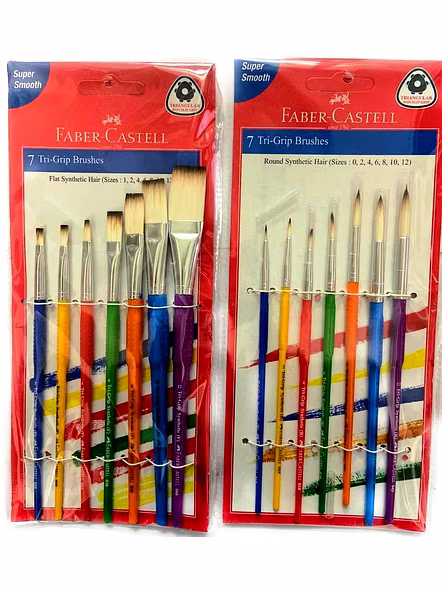 FABER CASTELL BRUSH SET OF 7 OF ROUND AND FLAT.