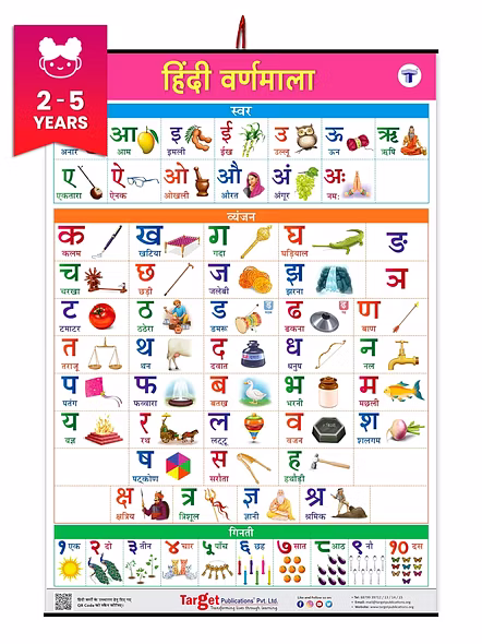 ● Hindi Alphabets: Our educational chart beautifully organizes the Hindi alphabets into 'Swar' (vowels) and 'Vyanjan' (consonants).
