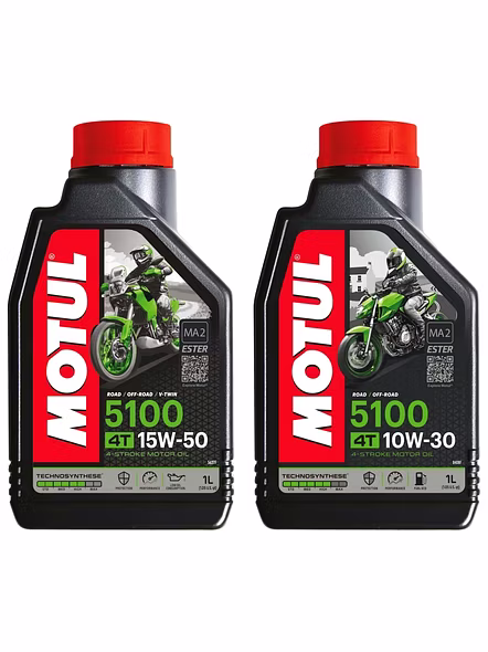 Motul 104080 5100 4T Hybrid 15W-50 API SM Technosynthese Semi Synthetic Engine Oil for Bikes (1 L) & Motul 104062 5100 4T Hybrid 10W-30 API SM Technosynthese Semi Synthetic Engine Oil for Bikes (1 L)