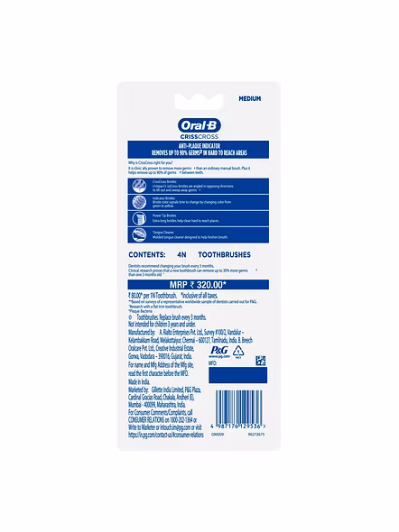 Angled at 15° in opposing directions, CrissCross bristles are designed to flex and then straighten, actively penetrating between the teeth and along the gum line to lift and sweep plaque away