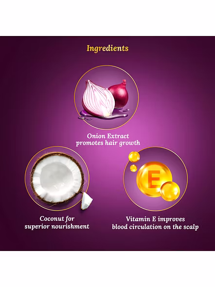 Blend of two super potent ingredients- onion and coconut , to help your hair grow longer, stronger and healthier