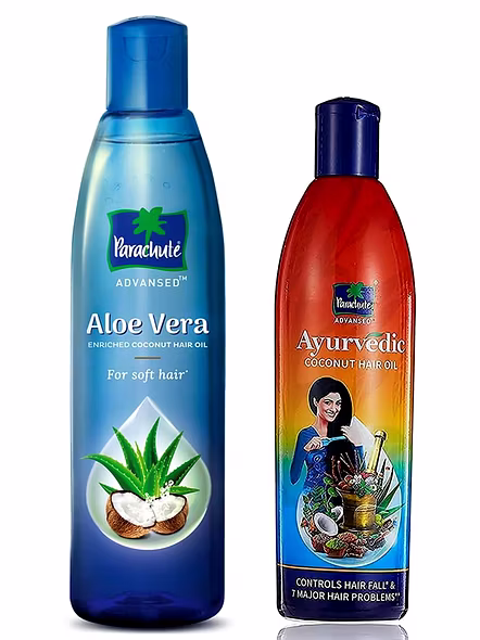 About this item Product 1: Makes hair irresistibly soft and frizz-free thereby preventing them from drying Product 1: Miracle combination of Aloe Vera gel extracts conditioning and Coconut Oil nourishment Product 1: Coconut oil penetrates 10x deeper than any other hair oil making them strong from the core Product 1: Aloe Vera deeply conditions and moisturizes hair leaving them soft and smooth Product 2: Parachute Advansed Ayurvedic Coconut Hair Oil contains 25 ingredients that solve hairfall and other major hair problems Product 2: This ayurvedic hair oil solves dandruff and prevents dryness of scalp