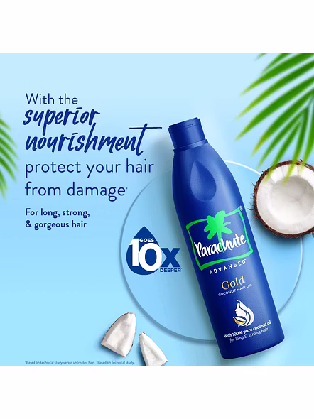 Parachute Advansed Gold Coconut Hair oil contains pure coconut oil enriched with vitamin E. Ideal For Men & Women