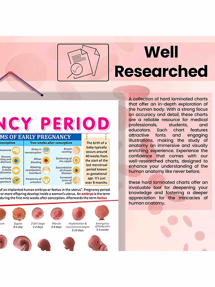 GOWOO presents a PREGNANCY PERIOD CHART in 20 x 30 inches. The pregnancy period chart provides useful information about the different stages of pregnancy and common symptoms experienced during early pregnancy. Learn more about these charts and the signs to look out for. Pregnancy period charts are useful tools that provide valuable information about the various stages of pregnancy. This chart shows how a sperm converts into a baby with the help of diagrams. This article includes charts highlighting pregnancy symptoms, helping expectant mothers track and understand their pregnancy journey. A pregnancy period chart provides information about the development of a fetus from conception to birth. It also details how sperm fertilises an egg and how the baby grows inside the female body. Explore this informative chart to understand the journey of pregnancy. A pregnancy chart provides information on the various stages and developments that occur during pregnancy. This includes details on how fertilisation occurs, the growth of the fetus, and how it is stored in the female body. Learn about the fascinating journey of conception and pregnancy with a comprehensive pregnancy chart.