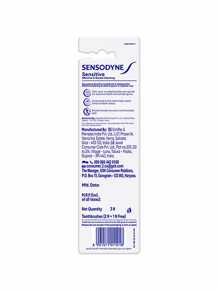 Sensodyne Sensitive toothbrush is designed for effective cleaning of teeth and gums in a gentle way