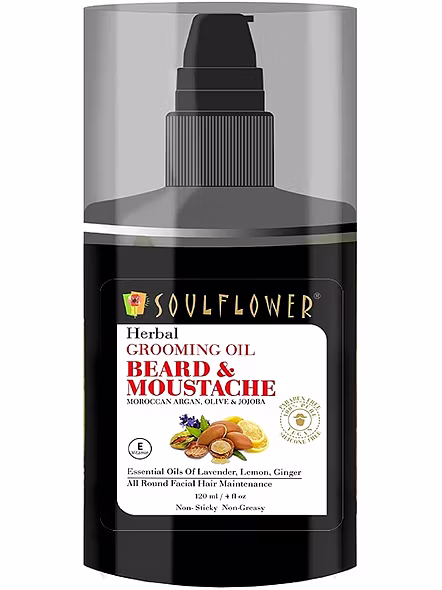 Soulflower Beard and Moustache Grooming Oil For Men, Preservative-free for Hair Nourishment & Growth for Patchy beard 100% Pure and Natural, 120ml | Clinically Tested
