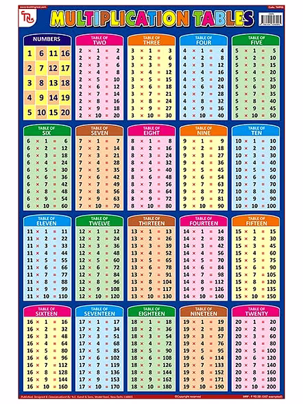 TMP06 | TEACHINGNEST Multiplication Tables Chart | Laminated 33x48 cm (13x19 inch) | Wall Sticking teachingnest Wall Chart