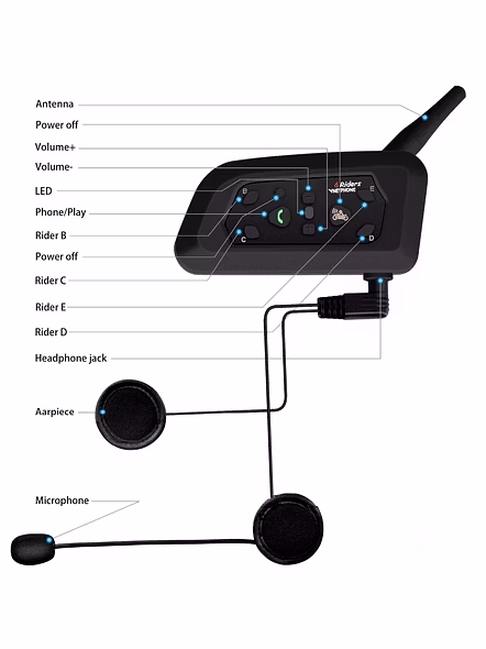 2.1200 meters Maximum talking range between 2 riders, Full Duplex wireless communication