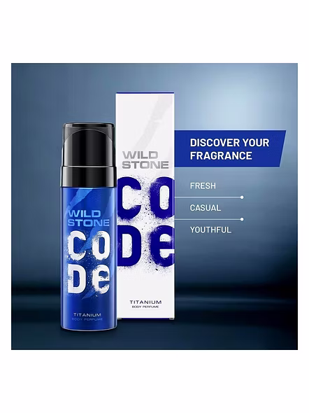 Win your day with every whiff of Wild Stone Code Titanium Body Perfume for Men. This aromatic woody masculine fragrance is crafted for the determined and resolute.This fragrance opens with a citrusy top that blends into exotic woody earthy notes, unleashing a burst of long lasting enticing aroma.The invigorating perfume boosts your confidence and sparkles up your mood. So spray it just before stepping out to exude an electrifying aura.When To Use: A strong official all day fragrance. Perfect for office wear and daily use. Works well with formals and casuals.